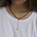 250,00leiColier realizat din pietre semipretioase, onix si hematit. Inchidere din Argint 925 placat cu Aur 24K, lant din otel inoxidabil si pandant inima din hematit, piatra semipretioasa.