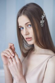 400,00leiAceasta piesa cu aer misterios, parca ar vrea sa spuna o poveste. Realizata cu mare grija din perle si cristale Swarovski, poate fi purtata in diferite moduri. Prinderea se face cu agrafe prin buclele din capete. Poate fi realizat si cu sarma aurie.