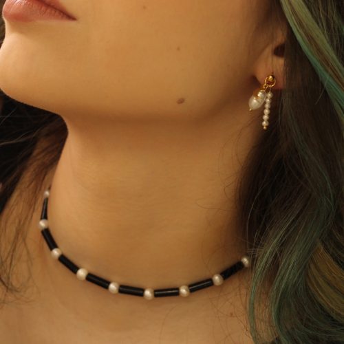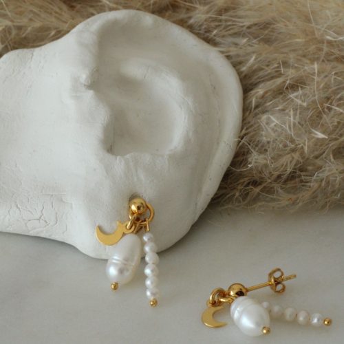 Cercei realizati din perle de cultura si argint 925 placat cu aur 24K.